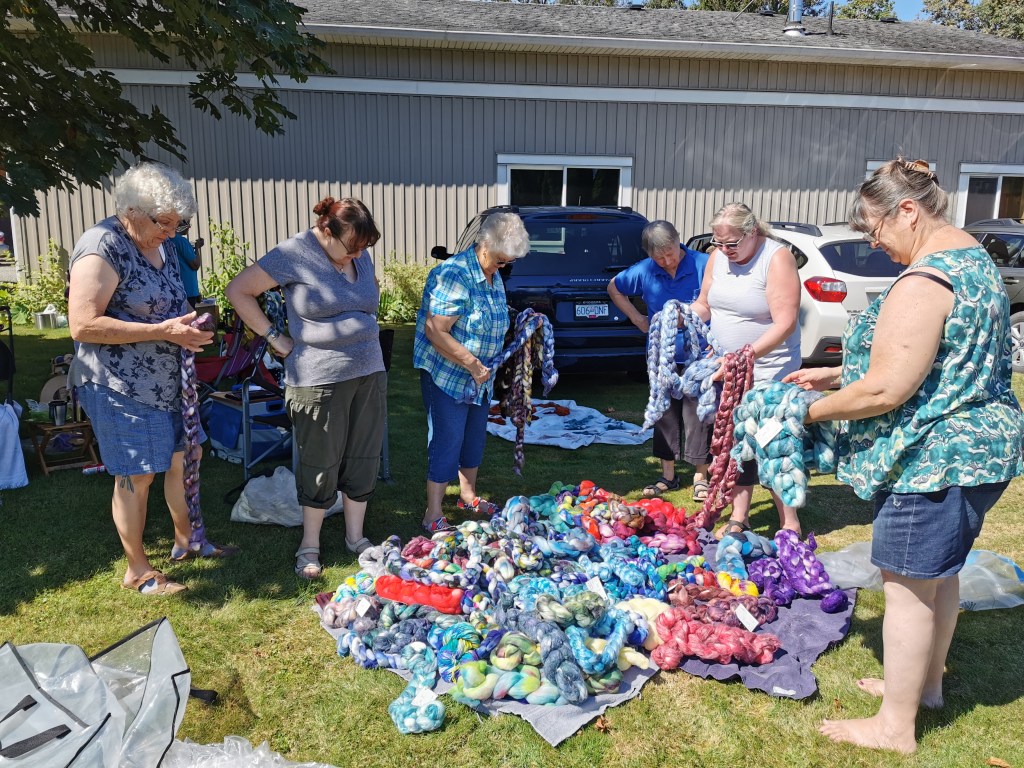 Jude, of Ewesful Creations, was kind enough to bring a pile of her custom dyed fibre for the rest of us to pick through and purchase.