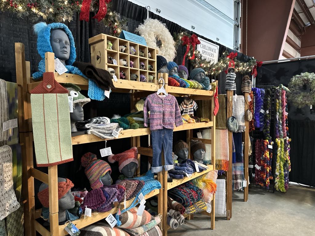 On November 15-17, 2024, we were once again at the Christmas Craft Market, hosted by the Chilliwack Arts Council. Many of our members knit, crocheted, spun, and wove items for sale. We had a very successful sale, and our items were well received, especially the needle-felted sheep that so many of our members made at a Tuesday workshop recently.