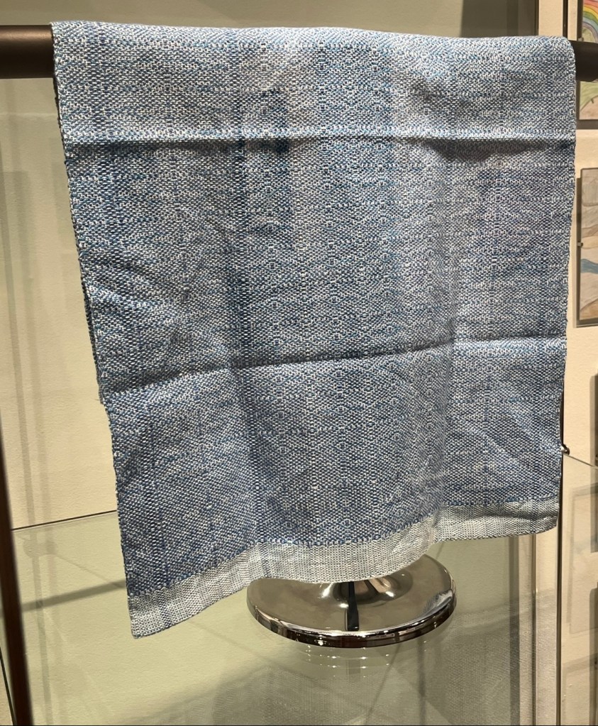 Jenny O. just sent in one of her recent projects—a gorgeous set of tea towels for a new bride. Jenny warped for four towels and wove each with a different colour weft (shown by the cone above). Each towel is different and together they’re nothing shy of lovely.